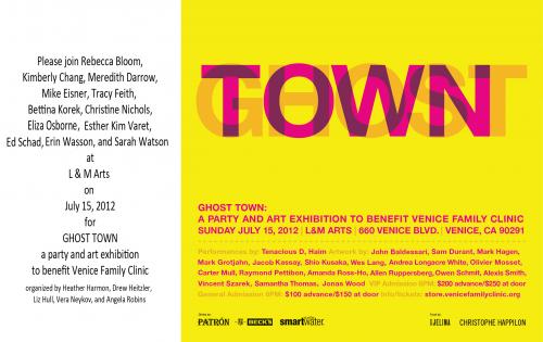 "Ghost Town" curated by Drew Heitzler a Benefit for the Venice Family Clinic. Organized by Drew Heitzler, Heather Harmon, Liz Hull, Vera Neykov and Angela Robbins at L&M Arts